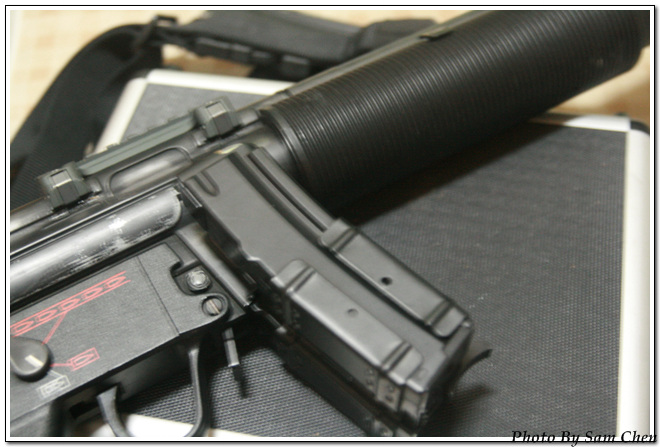 因為此槍款的MP5 前段就已經是滅音器的設計 因此 秘密行動不易被發現 只會有噗噗的槍聲
