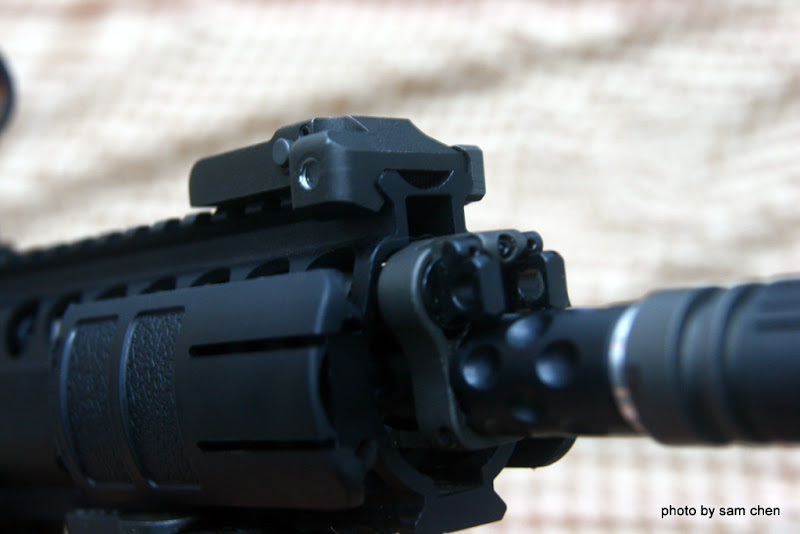左面 一樣有但夾釋放 方便操作 kac樣式的阪機護弓 隨槍附贈的快拆扣環