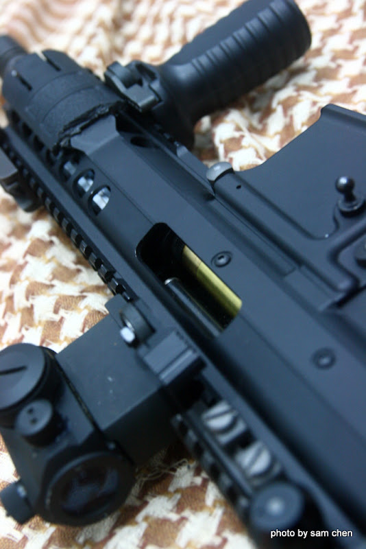 外觀看起來像M4的操作感 但內部卻完全不同呢 如同SCAR的短衝程覆進系統 加上輕量化的槍機