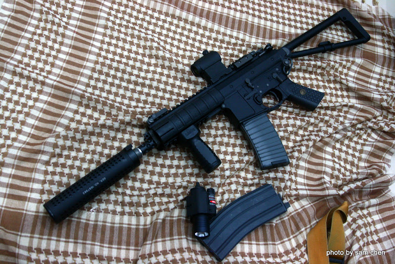 配上精巧的aimpoint T1 及消音管 一樣粉威